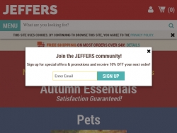 Get 30% Off Jeffers Coupon more Jeffers Promo Codes July ... - Dealscove Get 15% Off for jefferspet.com Show Code soon 240 0 0 Latest add Jeffers Coupons 10% OFF CODE 10% Off Your Next Purchase For New Subscriber Show Code Add 6/23/22 173 0 0 10% OFF CODE Save 10% Off Entire Order Show Code Add 6/23/22 247 0 0 Expired Jeffers Coupons COUPON CODE Save 10% This President's Day Show Code 3/8/22 107 0 0 SALE DEAL