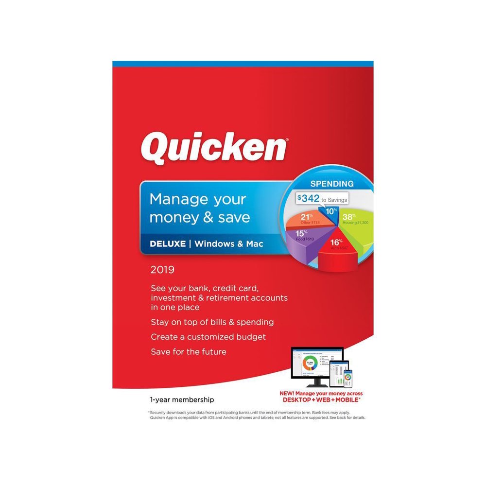 Best Buy: Quicken Deluxe 2017 QUI940800F002 Description. Monitor investments, manage your money and automatically import bank transactions with Quicken Deluxe 2017. Use the program's money-tracking features to stay on top of spending and create savings plans quickly and easily. Quicken Deluxe 2017 also includes full mobile app support, so you can check your progress on the go.